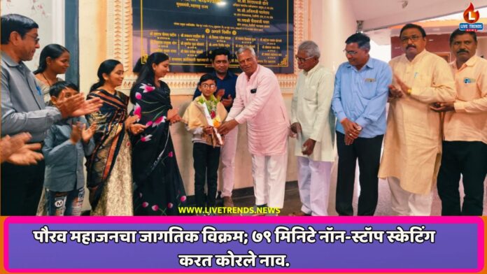 धरणगाव-लाईव्ह ट्रेंडस न्यूजह प्रतिनिधी । भारतीय स्वातंत्र्याला ७९ वर्षे पूर्ण झाल्याच्या निमित्ताने देशभर विविध उपक्रम राबवले जात असताना, क्रीडा क्षेत्रात एका भारतीय सुपुत्राने जागतिक विक्रम प्रस्थापित केला आहे. भारतातील स्केटिंग कोचेसच्या वतीने आयोजित ‘स्केटिंग मॅरेथॉन’मध्ये पौरव सुरजकुमार महाजन याने सलग ७९ मिनिटे नॉन-स्टॉप स्केटिंग करून जागतिक विक्रमाला गवसणी घातली आहे. पुणे येथे पार पडलेल्या या स्पर्धेच्या अंतिम फेरीत त्याने प्रथम क्रमांक पटकावून सुवर्णमयी कामगिरी केली.