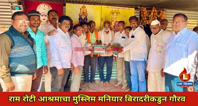 मुक्ताईनगर-लाईव्ह ट्रेंडस न्यूज प्रतिनिधी । मुक्ताईनगर येथील “प.पू गुरु वर्य संत रामभाऊ पुजारी बाबा सेवा भावी ट्रस्ट अंतर्गत “राम रोटी आश्रम” चे मुस्लिम मनियार बिरादरीच्या वतीने आश्रम वर जाऊन त्यांचे गौरव करण्यात आले.