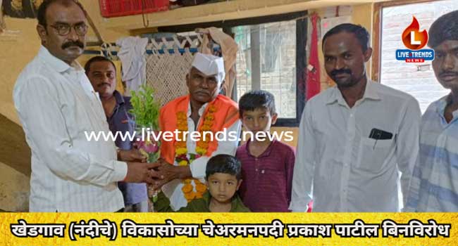 पाचोरा-लाईव्ह ट्रेंडस न्यूज प्रतिनिधी । पाचोरा तालुक्यातील खेडगाव (नंदीचे) विविध कार्यकारी विकास सोसायटीची चेअरमनपदाची निवडणूक प्रक्रिया नुकतीच पार पडली. यात चेअरमन पदी प्रकाश तिरसिंग पाटील यांची बिनविरोध निवड झाली आहे.