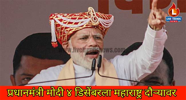 मुंबई-लाईव्ह ट्रेंडस न्यूज वृत्तसेवा | पंतप्रधान नरेंद्र मोदी ४ डिसेंबरला महाराष्ट्राच्या दौऱ्यावर येणार आहेत. दुपारी 4:15 च्या सुमारास, नरेंद्र मोदी सिंधुदुर्ग येथे पोहोचतील आणि राजकोट किल्ल्यावरील छत्रपती शिवाजी महाराजांच्या पुतळ्याचे अनावरण करतील.