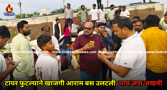 टायर फुटल्याने खाजगी आराम बस उलटली, पाच जण जखमी