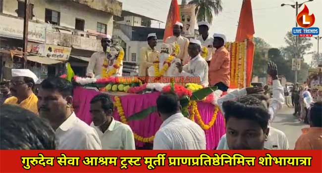 जामनेर-लाईव्ह ट्रेंडस न्यूज प्रतिनिधी | जामनेर शहरापासून काही अंतरावर भुसावळ रोडवर असलेल्या गुरुदेव सेवा आश्रम ट्रस्ट या ठिकाणी सुंदर असे मंदिर बांधण्यात आले असून या मंदिरामध्ये 29 जानेवारी ते 2 फेब्रुवारी पर्यंत मूर्ती प्राणप्रतिष्ठा विष्णू महाजन संत संमेलन यांच्यासह विविध संतांचे प्रवचन सत्संग असे कार्यक्रम चार दिवस चालणार असून आज पहिल्या दिवशी जामनेर शहरातून भव्य अशी शोभायात्रा काढण्यात आली.