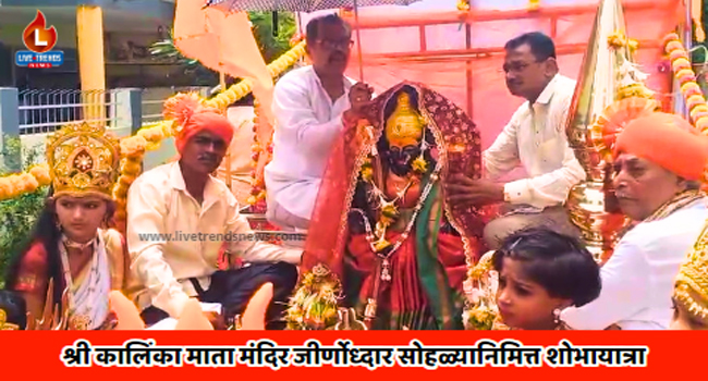 जळगाव-लाईव्ह ट्रेंडस न्यूज प्रतिनिधी । कासार सेवा संघाच्या वतीने श्री कालिंका माता मंदिर जीर्णोध्दार सोहळ्याचे आयोजन करण्यात आले. यात आज जळगाव शहरातील कासार समाजाच्या वतीने अयोध्या नगरातील कालिंका मातेच्या मुर्तीची भव्य शोभायात्रा काढण्यात आली.