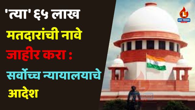 नवी दिल्ली-लाईव्ह ट्रेंडस न्यूज वृत्तसेवा। बिहारमधील मतदार यादीच्या विशेष गहन पुनरीक्षण (SIR) प्रक्रियेवर सर्वोच्च न्यायालयाने निवडणूक आयोगाला महत्त्वाचा आदेश दिला आहे. न्यायालयाने सांगितले की, ड्राफ्ट मतदार यादीतून काढून टाकलेल्या ६५ लाख मतदारांची यादी मंगळवारपर्यंत प्रसिद्ध करण्यात यावी. प्रत्येक मतदाराच्या नावासमोर त्याचे नाव का कापले गेले याचे कारणही स्पष्ट नमूद करावे.