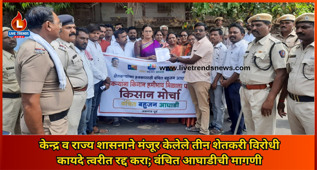 सर्वांचे नियम अथवा व्यवहार समान नसल्याने शेतकऱ्यांना बाजार समित्यांमध्ये जी सामूहिक सौदेबाजीची शक्ती होती अथवा त्याला भांडायला जागा होती तीच नष्ठ होवून बाजार समित्यांचे अस्तित्व ही कमजोर होइल. शेतकऱ्यांच्या शेतमालास किमान हमी भाव मिळावा व याची कडक अमलबजावणी करण्यात यावी यासह विविध मागण्यांसाठी दिल्ली येथे आपल्या न्याय हक्कासाठी देशातील शेतकरी बांधवांनी सुरू केलेल्या देशव्यापी ठीय्या आंदोलनास पाठिंबा देण्यासाठी वंचीत बहुजन आघाडीच्या पुर्व विभाग जिल्हाध्यक्ष शमीबा पाटील यांच्या नेतृत्वाखाली आज आंदोलन करण्यात आले यावेळी वंचीत बहूजन आधाहीच्या वतीने देण्यात आलेले विविध मागंण्याचे निवेदन तहसीलदार यांच्या वतीने यावल तहसील कार्यालयाचे आस्थापना लिपिक सुरज जाधव यांना देण्यात आले. यावेळी वंचीत बहुजन आघाडीचे योगेश तायडे, अशोक बाविस्कर, वंदना सोनवणे, वंचीत बहुजन आघाडीच्या जळगाव जिल्हा महा सचिव वंदना आराख, पदाधिकारी व कार्यकर्त प्रामुख्याने उपस्थित होते .