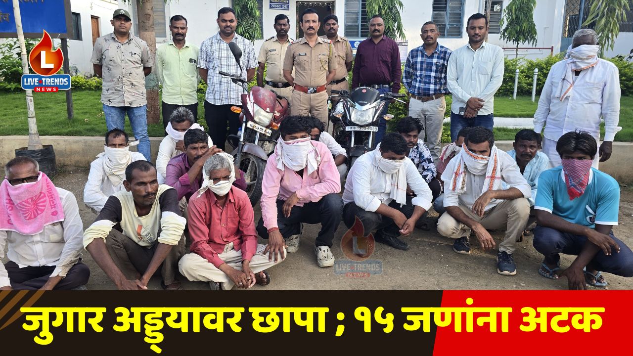 या छाप्यात अटक करण्यात आलेल्यांमध्ये सोनू धाकु भिल (वय ५०), विरभान श्रावण भिल (वय ४०), राहुल संतोष सोनवणे (वय २६), प्रवीण वसंत सोनवणे (वय ३९), संतोष माधव सोनवणे (वय ३०), सुनील दगा ठाकरे (वय ३५), मंगिलाल भाईदास चव्हाण (वय ४५), रतन धाकु भिल (वय ६०), अशोक गोविंदा पाटील (वय ५४), सचिन बापू पवार (वय ३७), कांतीलाल महादू सोनवणे (वय ३८), उत्तम बालाअप्पा जेढे (वय ५०), समाधान बापू पाटील (वय ३५), संभाजी महारु पाटील (वय ५८) आणि सुनील सीताराम वाघ (वय ४८), हे सर्व जवखेडे सिम, ता. एरंडोल, जि. जळगाव येथील रहिवासी आहेत.