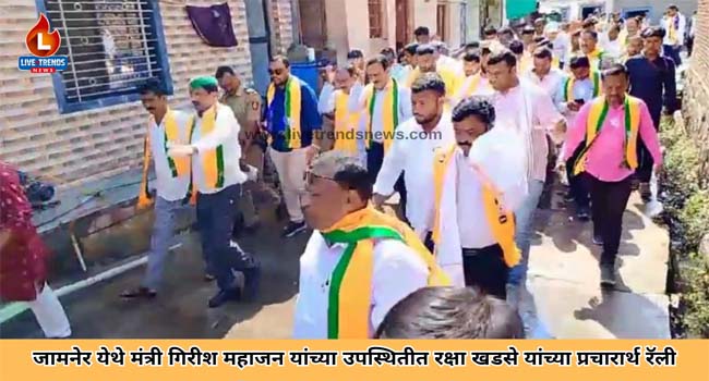 जामनेर-लाईव्ह ट्रेंडस न्यूज प्रतिनिधी | रावेर लोकसभा मतदारसंघाच्या महायुतीच्या उमेदवार रक्षा खडसे यांच्या प्रचारासाठी राज्याचे ग्रामविकास मंत्री गिरीश महाजन मैदानात उतरले असून स्वतः जामनेर तालुक्यात ठिकाणी गावागावांमध्ये जाऊन प्रचार रॅलीमध्ये सहभागी होत आहे. रक्षा खडसे यांचा जामनेर प्रचार दौऱ्यादरम्यान जामनेर शहरांमध्ये भव्य अशी प्रचार रॅली आयोजित करण्यात आली होती.
