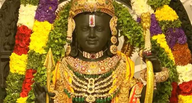 सोन्याच्या दागिन्यांनी सजलेल्या रामलल्लाला 5 वर्षाच्या मुलाच्या रुपात पाहून लोक भावुक झाले. ट्रस्टच्या सूत्रांनी दिलेल्या माहितीनुसार, 200 किलोच्या या मूर्तीला 5 किलो सोन्याच्या दागिन्यांनी सजवण्यात आले आहे. प्रभू त्यांच्या नखांपासून कपाळापर्यंत रत्नजडित आहेत. रामलल्लाने डोक्यावर सोन्याचा मुकुट घातला आहे.