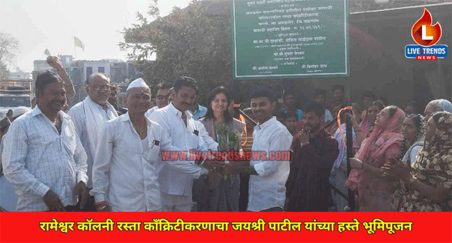 अमळनेर-लाईव्ह ट्रेंडस न्यूज प्रतिनिधी | अमळनेर शहरातील रामेश्वर कॉलनी भागात नगरोत्थान योजनेतून रस्ता काँक्रिटीकरण कामाचा शुभारंभ माजी नगराध्यक्षा जयश्री पाटील यांच्या हस्ते करण्यात आले. अमळनेर नगरपरिषदेअंतर्गत सुवर्ण जयंती नगरोत्थान महाअभियान योजनेच्या अंतर्गत रामेश्वर कॉलनी परिसरात काँक्रिटीकरण कामासाठी १६ लाख ७१ हजाराचा निधी मंजूर झाला असून दिनांक १८ रोजी या कामाचा शुभारंभ करण्यात आला. यावेळी माजी नगराध्यक्षा जयश्री अनिल पाटील यांच्या हस्ते भूमिपूजन करण्यात आले.