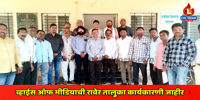 सावदा ता. रावेर-लाईव्ह ट्रेंडस न्यूज प्रतिनिधी | रावेर तालुका व्हाईस ऑफ मीडिया या आंतरराष्ट्रीय पत्रकार संघटनेची कार्यकारणी जाहीर करण्यात आली आहे. सावदा येथील विश्रामगृहावर दिनांक २९ वार बुधवार रोजी ज्येष्ठ पत्रकार दिलीप वैद्य सर यांच्या अध्यक्षतेखाली तसेच नाशिक विभागीय अध्यक्ष मिलिंद टोके यांच्या उपस्थितीत बैठकीचे आयोजन करण्यात आले होते. यावेळी रावेर तालुक्यातील पत्रकार बांधव मोठ्या संख्येने उपस्थित होते.