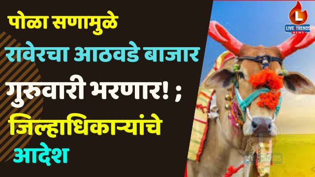 रावेर-लाईव्ह ट्रेंडस न्यूज प्रतिनिधी । रावेर शहराचा शुक्रवारी २२ ऑगस्ट रोजीचा आठवडे बाजार येणाऱ्या पोळा सणाच्या पार्श्वभूमीवर यावेळी गुरुवार, २१ ऑगस्ट रोजी भरण्याचे आदेश जिल्हाधिकारी आयुष प्रसाद यांनी दिले आहेत. सणाच्या दिवशी होणारी गर्दी आणि कायदा व सुव्यवस्थेचा प्रश्न लक्षात घेऊन प्रशासनाने हा निर्णय घेतला आहे.