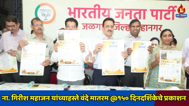 जळगाव-लाईव्ह ट्रेंड्स न्यूज प्रतिनिधी । भारतीय स्वातंत्र्यलढ्यात क्रांतीची मशाल पेटवणाऱ्या आणि देशभक्तीची ऊर्जा देणाऱ्या ‘वंदे मातरम’ या राष्ट्रमंत्राला १५० वर्षे पूर्ण होत असल्याच्या पार्श्वभूमीवर जळगावमध्ये एक ऐतिहासिक आणि प्रेरणादायी सोहळा पार पडला. भाजप जिल्हा सरचिटणीस डॉ. केतकीताई पाटील यांनी निर्मित केलेल्या ‘वंदे मातरम @१५०’ या विशेष दिनदर्शिकेचे प्रकाशन राज्याचे ग्रामविकास व आपत्ती व्यवस्थापन मंत्री ना. गिरीश भाऊ महाजन यांच्या हस्ते करण्यात आले.