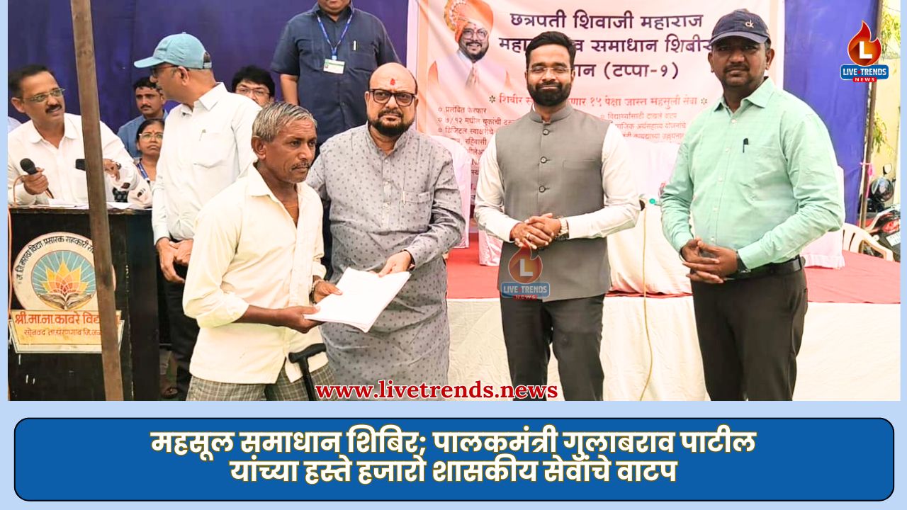 जळगाव-लाईव्ह ट्रेंड्स न्यूज प्रतिनिधी । शासनाचा खरा उद्देश म्हणजे सर्वसामान्य नागरिकांच्या आयुष्यात सकारात्मक बदल घडवणे होय. एखाद्या शेतकऱ्याची जमीनविषयक अडचण दूर होणे, विद्यार्थ्याला आवश्यक दाखला मिळणे किंवा एखाद्या कुटुंबाला घरकुलाचा लाभ मिळणे या क्षणांमधून लाभार्थ्यांच्या चेहऱ्यावर उमटणारे समाधान हेच शासनाच्या कार्याचे खरे यश आहे, असे प्रतिपादन जिल्ह्याचे पालकमंत्री गुलाबराव पाटील यांनी केले. धरणगाव तालुक्यातील सोनवद बु. येथे आयोजित ‘छत्रपती शिवाजी महाराज महसूल समाधान शिबिर’ प्रसंगी ते बोलत होते.