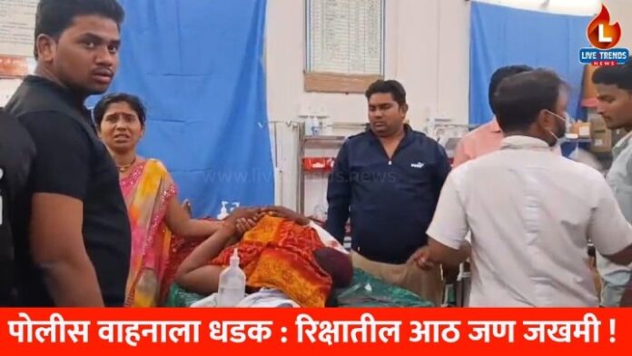 जळगाव- लाईव्ह ट्रेंड्स न्यूज प्रतिनिधी । जळगाव शहरातील मेहरुण तलाव परिसरातील नेहरूनगर जवळ सोमवारी २ फेब्रुवारी रोजी सायंकाळी ७ वाजेच्या सुमारास पोलीस एस्कॉर्ट वाहन आणि रिक्षाचा भीषण अपघात झाला. या अपघातात रिक्षेतील एकाच कुटुंबातील सदस्यांसह एकूण ८ जण गंभीर जखमी झाले आहेत. रस्त्यावरील खड्डा चुकवण्याच्या प्रयत्नात हा अपघात झाल्याची प्राथमिक माहिती समोर आली आहे.