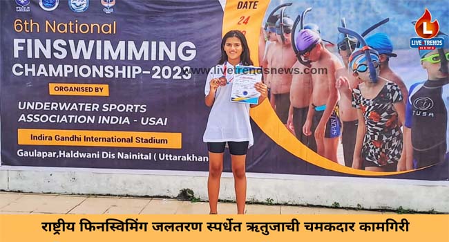 जळगाव-लाईव्ह ट्रेंडस न्यूज प्रतिनिधी । सावखेडा येथील जी. एच. रायसोनी पब्लिक स्कूलमधील इयत्ता नववीची विद्यार्थीनी ऋतुजा हर्षल भंडारी हिने नुकतेच उत्तराखंड राज्यातील नैनिताल येथे पार पडलेल्या राष्ट्रीय जलतरण स्पर्धेत मोठे यश संपादन केले.