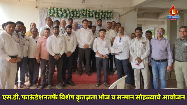 जळगाव-लाईव्ह ट्रेंड्स न्यूज प्रतिनिधी । आपले शहर स्वच्छ, सुंदर आणि हिरवेगार राहावे यासाठी अहोरात्र परिश्रम करणाऱ्या स्वच्छता दूत आणि आरोग्य कर्मचाऱ्यांप्रती कृतज्ञता व्यक्त करण्यासाठी जळगाव येथील एस.डी. फाऊंडेशनतर्फे विशेष कृतज्ञता भोज व सन्मान सोहळ्याचे आयोजन करण्यात आले. जळगाव शहर महानगरपालिका आणि पर्यावरण दूत यांच्या संयुक्त विद्यमाने सुरू असलेल्या ‘माझे शहर, माझी जबाबदारी’ या अभियानांतर्गत हा उपक्रम राबविण्यात आला.
