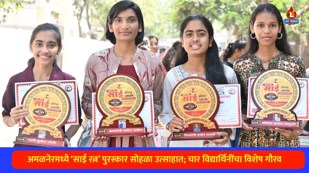 अमळनेर-लाईव्ह ट्रेंड्स न्यूज प्रतिनिधी । येथील साई इंग्लिश अकॅडमीतर्फे आयोजित विविध शैक्षणिक स्पर्धांमध्ये उल्लेखनीय यश संपादन करणाऱ्या विद्यार्थ्यांचा सत्कार आणि प्रतिष्ठेचा ‘साई रत्न’ पुरस्कार वितरण सोहळा मोठ्या उत्साहात पार पडला. एम. जे. हॉल येथे आयोजित या कार्यक्रमाला विद्यार्थी, पालक तसेच मान्यवरांची मोठ्या प्रमाणावर उपस्थिती लाभली होती. विद्यार्थ्यांच्या गुणवत्तेला प्रोत्साहन देणारा हा सोहळा प्रेरणादायी वातावरणात संपन्न झाला.