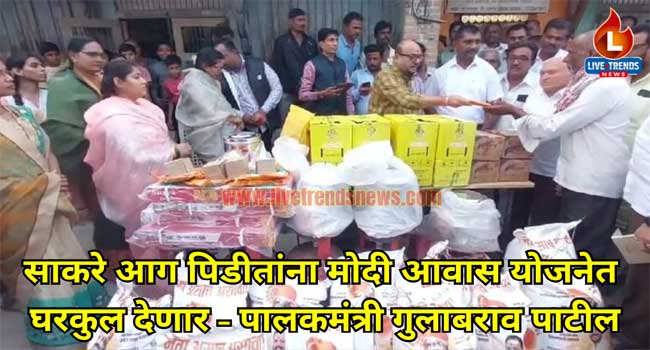 धरणगाव-लाईव्ह ट्रेंड्स न्युज प्रतिनिधी । धरणगाव तालुक्यातील साकरे गावात आगीमुळे घर व मालमत्तांचे नुकसान झालेल्या चारही कुटुंबास शासनाच्या मोदी आवास योजनेतून घरकुल देण्यात येतील. अशी ग्वाही पालकमंत्री गुलाबराव पाटील यांनी आज येथे दिली. शासन या पिडीत कुटुंबाच्या पाठीशी खंबीरपणे उभे आहे. असा विश्वास ही पालकमंत्र्यांनी यावेळी व्यक्त केला.
