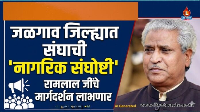 जळगाव-लाईव्ह ट्रेंड्स न्यूज प्रतिनिधी । राष्ट्रीय स्वयंसेवक संघाच्या शताब्दी वर्षानिमित्त जळगाव जिल्ह्यात विविध ठिकाणी प्रमुख नागरिक संघोष्टींचे आयोजन करण्यात आले असून, या कार्यक्रमांद्वारे समाजातील विविध क्षेत्रातील मान्यवरांशी संवाद साधण्याचा महत्त्वपूर्ण उपक्रम हाती घेण्यात आला आहे. जळगाव, भुसावळ, चाळीसगाव आणि अमळनेर येथे होणाऱ्या या संघोष्टींमध्ये संघाचे अखिल भारतीय स्तरावरील कार्यकर्ते उपस्थित राहणार आहेत.