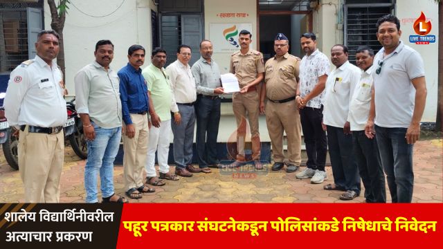 पहूर, ता. जामनेर – लाईव्ह ट्रेंड्स न्यूज प्रतिनिधी । जामनेर तालुक्यातील एका शाळेत  शाळेत शिक्षण घेत असलेल्या दहावीच्या विद्यार्थिनीवर स्कूल बस चालकाने अत्याचार केल्याची संतापजनक घटना समोर आली असून, या घटनेने संपूर्ण परिसरात खळबळ उडवली आहे. या अमानुष कृत्याचा तीव्र निषेध नोंदवत पहूर शहर पत्रकार संघटनेने पोलिस स्टेशनमध्ये निवेदन सादर करत आरोपीला कठोर शिक्षा देण्याची मागणी केली आहे.