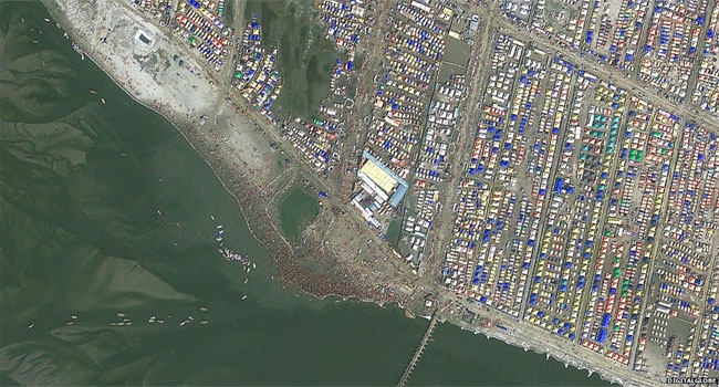 ४० कोटी भाविकांसाठी उत्तर प्रदेश सरकारने महाकुंभ नगर नावाचा एक नवीन जिल्हा तयार केला आहे. ज्यामध्ये १,५०,००० हून अधिक तंबू, ३,००० स्वयंपाकघरे, १,४५,००० स्वच्छतागृहे आणि ९९ पार्किंग लॉटचा समावेश आहे. महाकुंभ सुरू होण्यापूर्वी ६ एप्रिल २०२४ रोजी घेतलेल्या छायाचित्रांमध्ये प्रयागराज परेड ग्राउंड दिसत आहे. त्यानंतर येथे मोठे बदल होत असतानाचे २२ डिसेंबर २०२४ रोजी छायाचित्र आहे. यानंतर जेव्हा त्याचा वापर सुरू झाला तेव्हा १० जानेवारी २०२५ रोजी घेतलेल्या छायाचित्राचाही यात समावेश आहे.