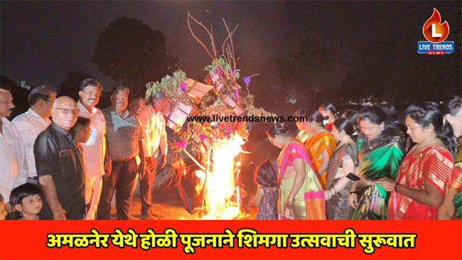 अमळनेर-लाईव्ह ट्रेंडस न्यूज प्रतिनिधी | अमळनेर येथे आदिवासी ठाकूरांच्या परंपरागत शिमगा उत्सवाला होळी पूजनाने होळी पेटवून शिमगा उत्सव साजरा करण्यास सुरवात झाली आहे. आदिवासी ठाकूरांच्या होळीचे वैशिष्ट्ये म्हणजे ठाकूर जमातीतील महिला मंडळ पुढाकार घेऊन होळीची तयारी करतात. श्रीराम कॉलनी येथील संत सखाराम महाराजांच्या शेतात पारंपारिक पद्धतीने ठाकूर समाजातर्फे होळी साजरी केली जाते. उंबर झाडाची फांदी उभी करून खोल खड्यातील पायाशी गवरी ठेवून सामूहिक वर्गणीतून गोळा केलेली कोरडी लाकडं, गवऱ्या रचून होळी उभी करण्यात आली होती. होळीस सजावट साहित्य , होळीला रंगबिरंगी पताका, फुगे लावून महिलांनी होळी सजविली होती.