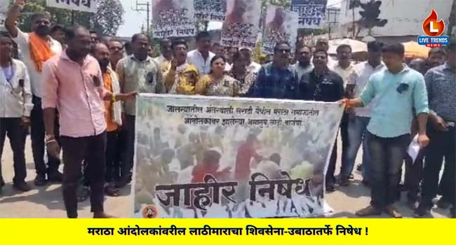 जालना येथील मराठा क्रांती मोर्चावर पोलिस प्रशासनाने अमानुषपणे लाठीचार्ज केला. या लाठीचार्ज मध्ये आंदोलनात सहभागी झालेले मराठा समाजाचे पुरुष, महिला, युवक, युवती गंभीर जखमी झाले आहेत. या घटनेच्या निषेधार्थ आज २ सप्टेंबर रोजी शहरातील मध्यवर्ती ठिकाणी असलेल्या शिवतीर्थ या उद्धव बाळासाहेब ठाकरे शिवसेना कार्यालयापासून उबाठा सेनेच्या नेत्या वैशाली सुर्यवंशी यांच्या नेतृत्वाखाली तहसिल कार्यालया पर्यंत भव्य निषेध मोर्चा काढण्यात आला.