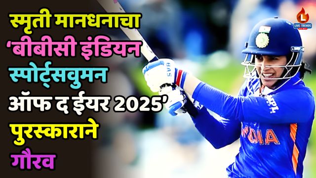 नवी दिल्ली-लाईव्ह ट्रेंड्स न्यूज वृत्तसेवा। महाराष्ट्राची लेक आणि भारतीय महिला क्रिकेट संघाची आघाडीची फलंदाज स्मृती मानधना हिने पुन्हा एकदा आंतरराष्ट्रीय स्तरावर भारताचा झेंडा उंचावला आहे. 2025 सालच्या ‘बीबीसी इंडियन स्पोर्ट्सवुमन ऑफ द ईयर’ या मानाच्या पुरस्कारासाठी तिची निवड करण्यात आली असून दिल्लीत पार पडलेल्या भव्य सोहळ्यात तिच्या नावाची घोषणा करण्यात आली. भारतीय महिला संघाच्या ऐतिहासिक विश्वचषक विजयात मोलाची भूमिका बजावल्यामुळेच तिला हा प्रतिष्ठेचा सन्मान मिळाला आहे.