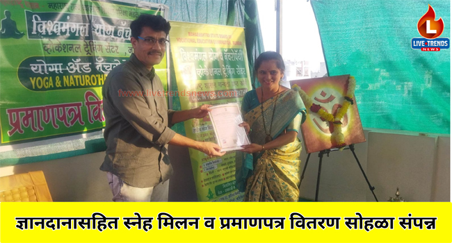 जळगाव-लाईव्ह ट्रेंडस न्यूज प्रतिनिधी | विश्व मंगल योग निसर्गोपचार केंद्रामध्ये स्नेह मिलनाच्या कार्यक्रमात हळदी कुंकवाच्या निमित्ताने आरोग्याचे वाण देण्यात आले. त्यावेळी सुप्रसिद्ध न्यूरोसर्जन डॉक्टर राजेश जैन यांनी योग, प्राणायाम व ध्यानाने मेंदूवर कसा परिणाम होतो, आजार कसे दूर होतात अगदी सहज सोप्या भाषेत सांगितले तसेच मनोकायिक आजार योगा प्राणायाम नियमित केल्याने कसे बरे होतात यावर सुध्दा मार्गदर्शन केले व उपस्थित महिलांचे शंका निरसनही केले.