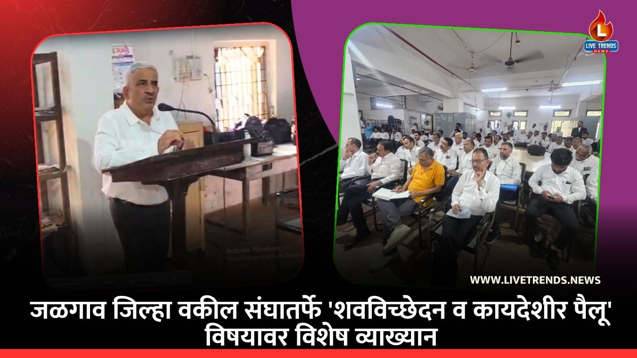जळगाव – लाईव्ह ट्रेंड्स न्यूज प्रतिनिधी । जळगाव जिल्हा वकील संघातर्फे नुकतेच एक विशेष व्याख्यान आयोजित करण्यात आले होते. ‘शवविच्छेदन (Postmortem) आणि त्याचे कायदेशीर पैलू’ या विषयावर ज्येष्ठ फौजदारी वकील ॲड. सुशील ए. अत्रे यांनी उपस्थितांना सखोल मार्गदर्शन केले. गुन्ह्यांच्या तपासात वैद्यकीय पुराव्यांचे महत्त्व आणि कायद्याची सांगड कशी घालावी, यावर त्यांनी प्रकाश टाकल्याने हे सत्र नवीन वकिलांसाठी अत्यंत अभ्यासपूर्ण ठरले.