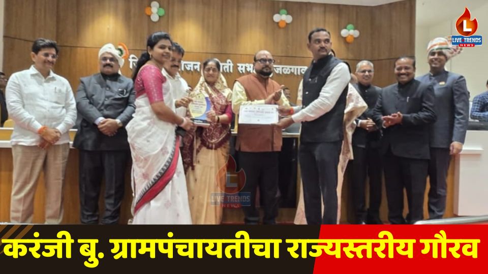 पारोळा – लाईव्ह ट्रेंड्स न्यूज प्रतिनिधी । जळगाव जिल्ह्यातील पारोळा तालुक्यातील करंजी बु. हे गाव आपल्या सर्वांगीण विकासकामांसाठी राज्यस्तरावर प्रसिद्धीच्या झोतात आले आहे. राज्य पुरस्कृत घरकुल आवास योजनेचे उद्दिष्ट यशस्वीरित्या पूर्ण केल्याबद्दल करंजी बु. ग्रामपंचायतीचे सरपंच भैय्यासाहेब रोकडे व ग्रामपंचायत अधिकारी सौ. वैशाली पाटील यांना नुकतेच राज्यस्तरीय पुरस्काराने गौरवण्यात आले. हा पुरस्कार पालकमंत्री गुलाबराव पाटील, खासदार स्मिताताई वाघ, आमदार राजू मामा भोळे, जिल्हाधिकारी आयुष प्रसाद आणि जिल्हा परिषद सीईओ मीनल करणवाल यांच्या हस्ते प्रदान करण्यात आला.