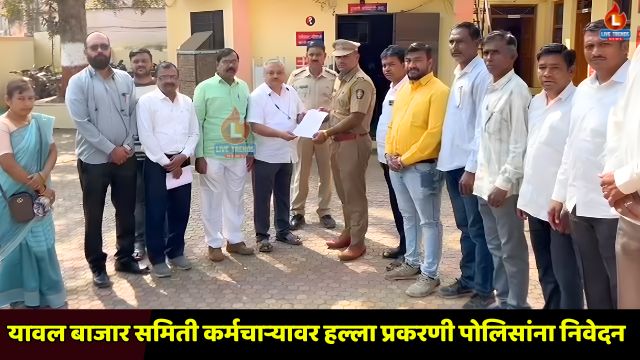 यावल -लाईव्ह ट्रेंड्स न्यूज प्रतिनिधी । यावल कृषी उत्पन्न बाजार समितीच्या कर्मचाऱ्यावर कर्तव्य बजावत असताना झालेल्या गंभीर मारहाणीच्या घटनेमुळे परिसरात खळबळ उडाली असून, या प्रकरणी बाजार समितीच्या सर्व कर्मचाऱ्यांच्या वतीने फैजपूर येथे पोलिस उपअधिक्षकांना लेखी निवेदन देण्यात आले आहे. शासकीय कर्मचारी असलेल्या बाजार समिती कर्मचाऱ्यांवर जीवघेणा हल्ला करून धमकावल्याचा आरोप करत दोषींवर कठोर कारवाईची मागणी करण्यात आली आहे.
