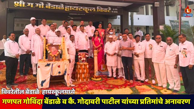 विवरे-लाईव्ह ट्रेंड्स न्यूज प्रतिनिधी । विवरे येथील श्री ग. गो. बेंडाळे हायस्कूलमध्ये आज (१५ नोव्हेंबर २०२५, शनिवार) संस्थेला जमीन, दिशा आणि बळ देणाऱ्या दोन महान व्यक्तींच्या प्रतिमांचे अनावरण करण्यात आले. गावाच्या शैक्षणिक उन्नतीसाठी कार्य करणाऱ्या आणि दानशूर वृत्तीने शाळेला पाठबळ देणाऱ्या स्व. गणपत गोविंदा बेंडाळे आणि कै. गोदावरी वासुदेव पाटील यांच्या कार्याचा गौरव करण्यासाठी आयोजित केलेल्या या समारंभात मोठ्या संख्येने मान्यवर, माजी विद्यार्थी आणि ग्रामस्थ उपस्थित होते.