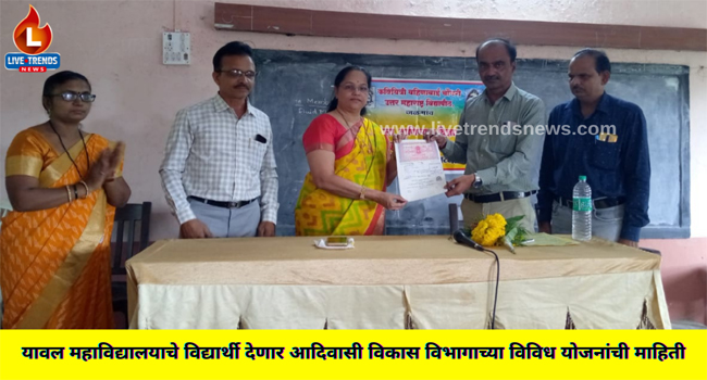 प्राचार्या डॉ.संध्या सोनवणे म्हणाले, यावल महाविद्यालय आणि एकात्मिक आदिवासी विकास विभागाचे प्रकल्प अधिकारी अरुण पवार यांच्यात शैक्षणिक वर्ष २०२३ -२४ ते २०२५ -२६ असा तीन वर्षाचा करार झाला आहे. यावेळी एकात्मिक आदिवासी प्रकल्प विकास कार्यालयाचे सहाय्यक प्रकल्प अधिकारी प्रशांत माहूरे, वरिष्ठ लिपिक विकास पाटील, उपप्राचार्य प्रा.एम.डी. खैरनार , प्रा.ए.पी.पाटील, प्रा.संजय पाटील आदी यावेळी उपस्थित होते. शासनाच्या आदिवासीं नागरिकांसाठी राबविण्यात येणाऱ्या विविध कल्याणकारी योजना, पोर्टलवर संवाद, समाजमाध्यमे यांच्या मार्फत जनजागृती करण्यात येणार आहे.