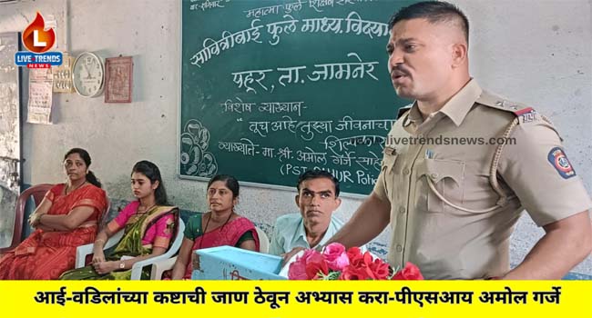 पहूर , ता . जामनेर-लाईव्ह ट्रेंडस न्यूज प्रतिनिधी | विद्यार्थ्यांनी आपल्या शेतकरी – कष्टकरी आई-वडिलांच्या कष्टाची जाण ठेवून अभ्यास करावा असे प्रतिपादन पहूर पोलीस ठाण्याचे पोलीस उपनिरीक्षक अमोल गर्जे यांनी केले. महात्मा फुले शिक्षण संस्था संचलित सावित्रीबाई फुले माध्यमिक विद्यालयात दहावीच्या विद्यार्थ्यांसाठी आयोजित विशेष व्याख्यानात बोलत होते.
