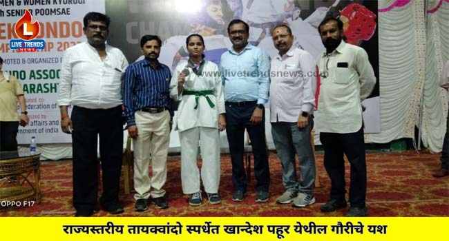 पहूर-लाईव्ह ट्रेंडस न्यूज प्रतिनिधी ।  तायक्वांदो  असोसिएशन ऑफ महाराष्ट्र या संघटनेतर्फे आयोजित ३३ व्या राज्यस्तरीय तायक्वांदो स्पर्धेत  खान्देश कन्या गौरी विजय कुमावत हीने चमकदार कामगीरी करत कांस्यपदकावर मोहर उमटविली आहे.
