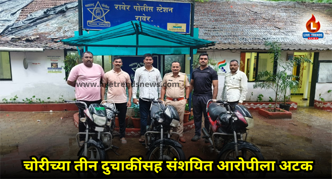 याबाबत अधिक माहिती अशी की, यश प्रकाश देशमुख (वय २१, रा. शिरूर दिगर ता. शहादा हल्ली मु. विद्यानगर, रावेर) यांची दुचाकीची २ जुलै रोजी रात्री ८ वाजेच्या सुमारास चोरीस गेली होती. याप्रकरणी रावेर पोलीसात गुन्हा दाखल करण्यात आला होता. या गुन्ह्याचा तपास सुरू होता. दरम्यान रावेर पोलीस स्टेशनला गोपनीय माहिती मिळाली. त्यानुसार त्यांनी रावेर शहरातील छोरीया मार्केट येथे बुधवारी ३ जुलै रोजी सापळा रचून सराईत चोरटा जगराम यारसिंह बारेला (वय १९, रा. शहापूर ता. जि. बऱ्हाणपूर, मध्यप्रदेश) हा मिळून आला. सुरुवातीला त्याने उडवाउडवीची उत्तर दिली. गुन्ह्यात चोरीस झालेली दुचाकी आणि इतर आणखी दोन दुचाकी त्याने काढून दिल्या असून गुन्ह्याची कबुली दिली आहे. सदर कामगिरी पोलीस अधीक्षक डॉ. महेश्वर रेड्डी, अप्पर पोलीस अधीक्षक अशोक नखाते, सहाय्यक पोलीस अधीक्षक अन्नपूर्णा सिंह यांच्या मार्गदर्शनाखाली निरीक्षक विशाल जयस्वाल, नाईक किशोर सपकाळे, समाधान ठाकूर, सचिन घुगे, विशाल पाटील, प्रमोद पाटील, महेश मोगरे आदींच्या पथकाने केली आहे.