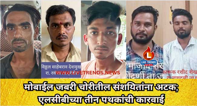 जळगाव-लाईव्ह ट्रेंडस न्यूज प्रतिनिधी । जळगाव जिल्ह्यात मोबाईल चोरीच्या घटनांमध्ये वाढ झाल्याने त्या पार्श्वभूमीवर पोलीस अधीक्षकांनी स्थानिक गुन्हेला आदेश दिले होते. स्थानिक गुन्हे शाखेच्या तीन वेगवेगळ्या पथकाने जळगाव जिल्ह्यात वेगवेगळ्या ठिकाणाहून मोबाईल जबरी चोरी करणाऱ्या संशयितांना जळगाव स्थानिक गुन्हे शाखेने अटक केली आहे.