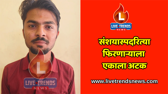 जळगाव-लाईव्ह ट्रेंड्स न्युज प्रतिनिधी । शहरातील जुनी सरस्वती डेअरीच्या गल्लीत संशयास्पदरित्या फिरत असणाऱ्या एकाला शहर पोलिसांनी अटक केली आहे. त्याच्या विरोधात शहर पोलीस ठाण्यात गुन्हा दाखल करण्यात आला आहे. अनिकेत आनंद सोनवणे (वय-२४, रा.महाबळ, जळगाव) असे अटक केलेल्या संशयित आरोपीचे नाव आहे.