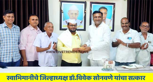 मुक्ताईनगर-लाईव्ह ट्रेंडस न्यूज प्रतिनिधी । जळगांव जिल्ह्यातील शेतकरी बांधवांच्या समस्या, अडचणी कायम शासकीय पातळीवर स्वाभिमानी शेतकरी संघटनेचे जिल्हाध्यक्ष डॉ. विवेक सोनवणे वेगवेगळ्या प्रकारच्या लक्षवेधी आंदोलनाच्या माध्यमातून मांडतात म्हणून शेतकरी बांधवांप्रति असलेल्या जिव्हाळा निमित्ताने अंतुर्ली येथे शेतकऱ्यांच्या वतीने सत्कार करण्यात आला.