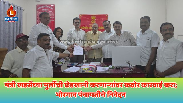 मंत्री खडसेंच्या मुलींची छेडखानी करणाऱ्यांवर कठोर कारवाई करा; भोरगाव पंचायतीचे निवेदन