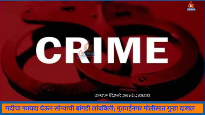 मुक्ताईनगर लाईव्ह ट्रेंडस न्यूज प्रतिनिधी । मुक्ताईनगर येथील बसस्थानकावर बसमध्ये चढत असताना एका महिलेच्या हातातील ७० हजार रुपये किमतीची सोन्याची बांगडी अज्ञात चोरट्याने कापून चोरून नेल्याची घटना ४ फेब्रुवारी रोजी दुपारी घडली. याबाबत मुक्ताईनगर पोलीस ठाण्यात अज्ञात चोरट्यांविरोधात गुन्हा दाखल करण्यात आला आहे.