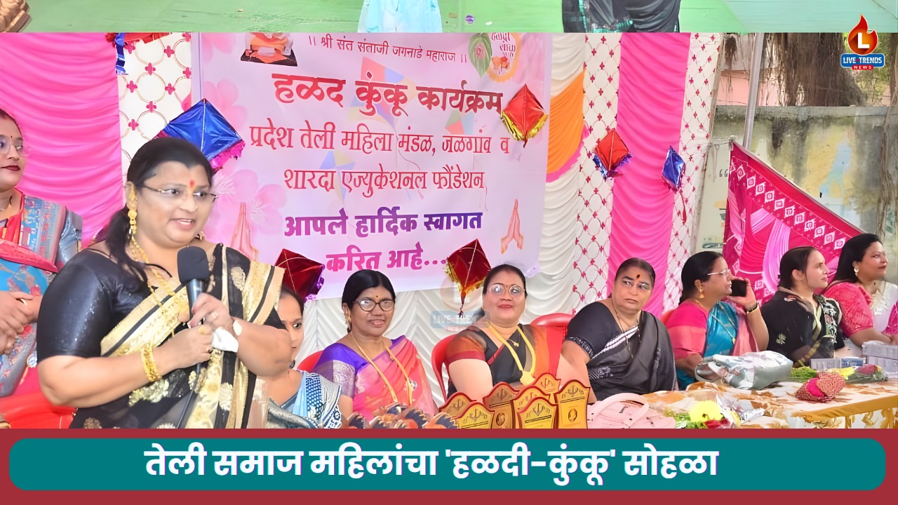 जळगाव-लाईव्ह ट्रेंड्स न्यूज प्रतिनिधी । तेली प्रदेश महिला मंडळ जळगाव व शारदा एज्युकेशन यांच्या संयुक्त विद्यमाने मकर संक्रांतीचे औचित्य साधून तेली समाज भगिनींसाठी भव्य दिव्य ‘हळदी-कुंकू’ समारंभाचे आयोजन करण्यात आले होते. जळगाव शहरातील पांझरापोळ जवळील शाळा क्रमांक ३ च्या परिसरात पार पडलेल्या या कार्यक्रमाला समाज बांधवांच्या शेकडो महिला भगिनींनी उत्स्फूर्त हजेरी लावली. तिळगुळाचा गोडवा आणि एकमेकींना वाण लुटण्याच्या परंपरेसोबतच या कार्यक्रमात महिलांच्या कलागुणांना वाव देणारे विविध उपक्रम राबवण्यात आले.