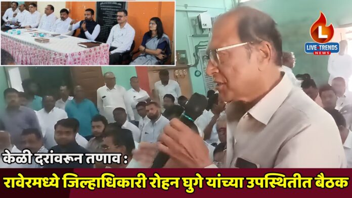 रावेर-लाईव्ह ट्रेंड्स न्यूज प्रतिनिधी । केळी उत्पादकांसाठी महत्त्वाच्या दरप्रश्नावर चर्चा करण्यासाठी आयोजित करण्यात आलेल्या बैठकीकडे शेतकऱ्यांनी पाठ फिरवल्याने रावेरमध्ये प्रशासन आणि शेतकरी यांच्यातील दरी पुन्हा एकदा अधोरेखित झाली. जिल्हाधिकारी रोहन घुगे यांच्या प्रमुख उपस्थितीत ही बैठक पार पडली, मात्र अपेक्षित प्रतिसाद न मिळाल्याने बैठकीचे महत्त्व कमी झाल्याची चर्चा सुरू आहे.
