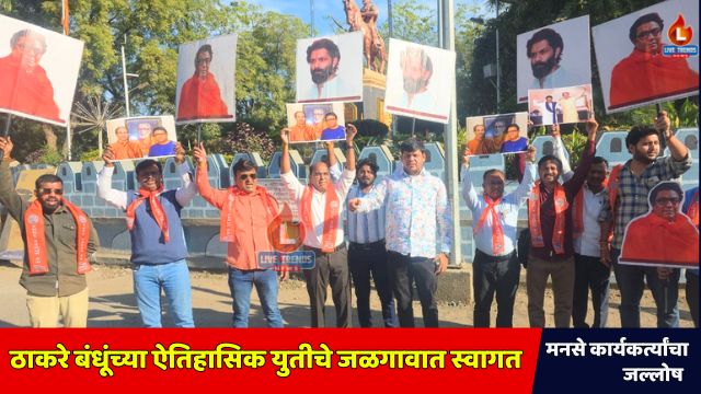 जळगाव-लाईव्ह ट्रेंडस न्यूज प्रतिनिधी । महाराष्ट्राच्या राजकारणात दोन ठाकरे बंधू म्हणजेच राज ठाकरे आणि उद्धव ठाकरे यांच्या पक्षांची युती झाल्याच्या वृत्ताने संपूर्ण राज्यात खळबळ उडाली आहे. या ऐतिहासिक निर्णयाचे पडसाद जळगावात उमटले असून, महाराष्ट्र नवनिर्माण सेनेच्या (मनसे) वतीने जळगाव शहरात मोठ्या प्रमाणावर जल्लोष साजरा करण्यात आला.