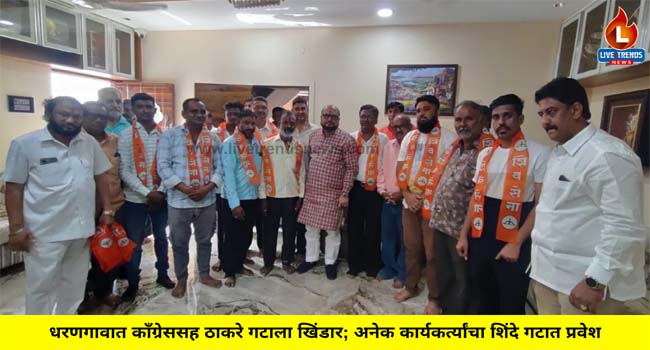 धरणगाव शहरातील काँग्रेससह उद्धव बाळासाहेब ठाकरे, शिवसेनेचे अनेक कार्यकर्त्यांचा शिंदे, शिवसेनेत प्रवेश पालकमंत्री गुलाबराव पाटील साहेब यांच्या नेतृत्वावर विश्वास ठेवून निलेश इंगळे, भगवान महाजन, चंद्रकांत जाधव, राजेंद्र बोरसे, सुभाष चौधरी, मुकेश चौधरी, शांताराम चौधरी, घनश्याम सातव, शब्बीर सय्यद, अखिल कुरेशी, सचिन कासार यांच्या सह अनेक कार्यकर्त्यांनी प्रवेश केला.