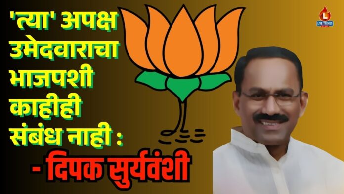 जळगाव-लाईव्ह ट्रेंडस न्यूज प्रतिनिधी । जळगाव महानगरपालिका निवडणुकीच्या रिंगणात महायुती विरुद्ध बंडखोर असा संघर्ष आता पेटला आहे. प्रभाग क्रमांक १३ मध्ये भारतीय जनता पक्षाच्या नावाचा वापर करून काही अपक्ष उमेदवार मतदारांची दिशाभूल करत असल्याचा गंभीर प्रकार समोर आला आहे. या पार्श्वभूमीवर, भाजप महानगराध्यक्ष दिपक सुर्यवंशी यांनी प्रसिद्धी पत्रकाद्वारे स्पष्ट केले आहे की, अशा बंडखोर उमेदवारांचा भारतीय जनता पक्षाशी कोणताही संबंध नाही.