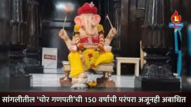 सांगली – लाईव्ह ट्रेंड्स न्यूज वृत्तसेवा । सर्वत्र गणेशोत्सवाचा थाटामाट सुरू असतानाच सांगलीत दरवर्षी अगदी गुप्तपणे, कोणताही गाजावाजा न करता बसवला जाणारा ‘चोर गणपती’ यंदाही भाविकांच्या श्रद्धेचा केंद्रबिंदू ठरला. दीड दिवसासाठी बसवला जाणारा आणि विसर्जन न करता जपून ठेवला जाणारा हा गणपती म्हणजे केवळ एक धार्मिक प्रतीक नसून, सांगलीच्या एकात्मतेच्या संस्कृतीचेही अभिमानास्पद प्रतिक आहे. गणेश चतुर्थीच्या दोन दिवस अगोदर हा गणपती बसवण्याची ही अनोखी परंपरा आहे.