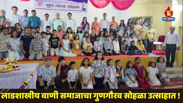 जळगाव-लाईव्ह ट्रेंडस न्यूज प्रतिनिधी । जळगाव येथील लाडशाखीय वाणी समाज विकास मंडळाने आयोजित केलेला गुणवंत विद्यार्थी गुणगौरव सोहळा नुकताच मोठ्या उत्साहात पार पडला. या सोहळ्यात समाजातील सुमारे २५० हून अधिक विद्यार्थ्यांनी विविध परीक्षांमध्ये मिळवलेल्या यशाबद्दल त्यांचा सन्मान करण्यात आला. या कार्यक्रमाला राजकीय, सामाजिक आणि प्रशासकीय क्षेत्रातील अनेक मान्यवर उपस्थित होते.
