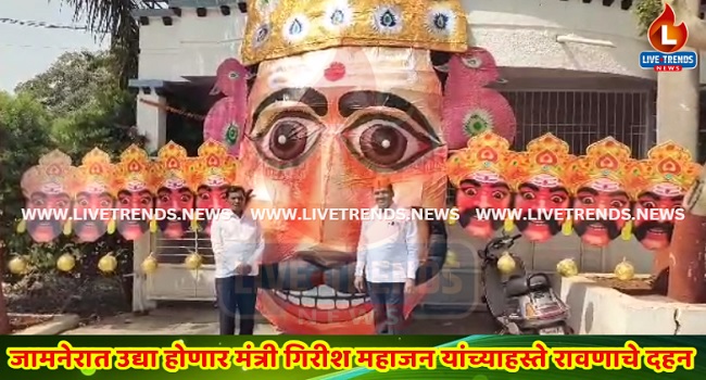 जामनेर-लाईव्ह ट्रेंडस न्यूज प्रतिनिधी । गेल्या ५० वर्षापासून जामनेर शहरांमध्ये रावण दहनाची परंपरा असून उद्या मंगळवारी दसरानिमित्त हरातील दसरा मैदानावर ५१ फुटी रावणाचे दहन राज्याचे ग्रामविकास मंत्री गिरीश महाजन व माजी नगराध्यक्ष साधना महाजन यांच्याहस्ते होणार आहे.